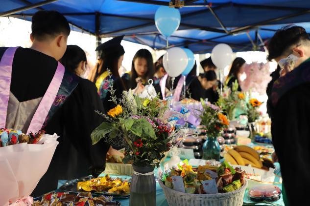 公司经理王竞红代表学院与毕业生代表互换纪念礼物。将带有学院特色的压花封在滴胶中,寓意将东林园林的时光定格成为人生中的美好缩影,希望员工们无论走的多远,都能回忆起在bwin度过的美好时光。毕业生送给学院的是一束代表着四个专业的鲜花,根据学士服垂步颜色不同,分别选取了三种颜色的花作为主花。祝福老师和园林学子们在以后的生活中充满阳光、充满欢乐、幸福安康。