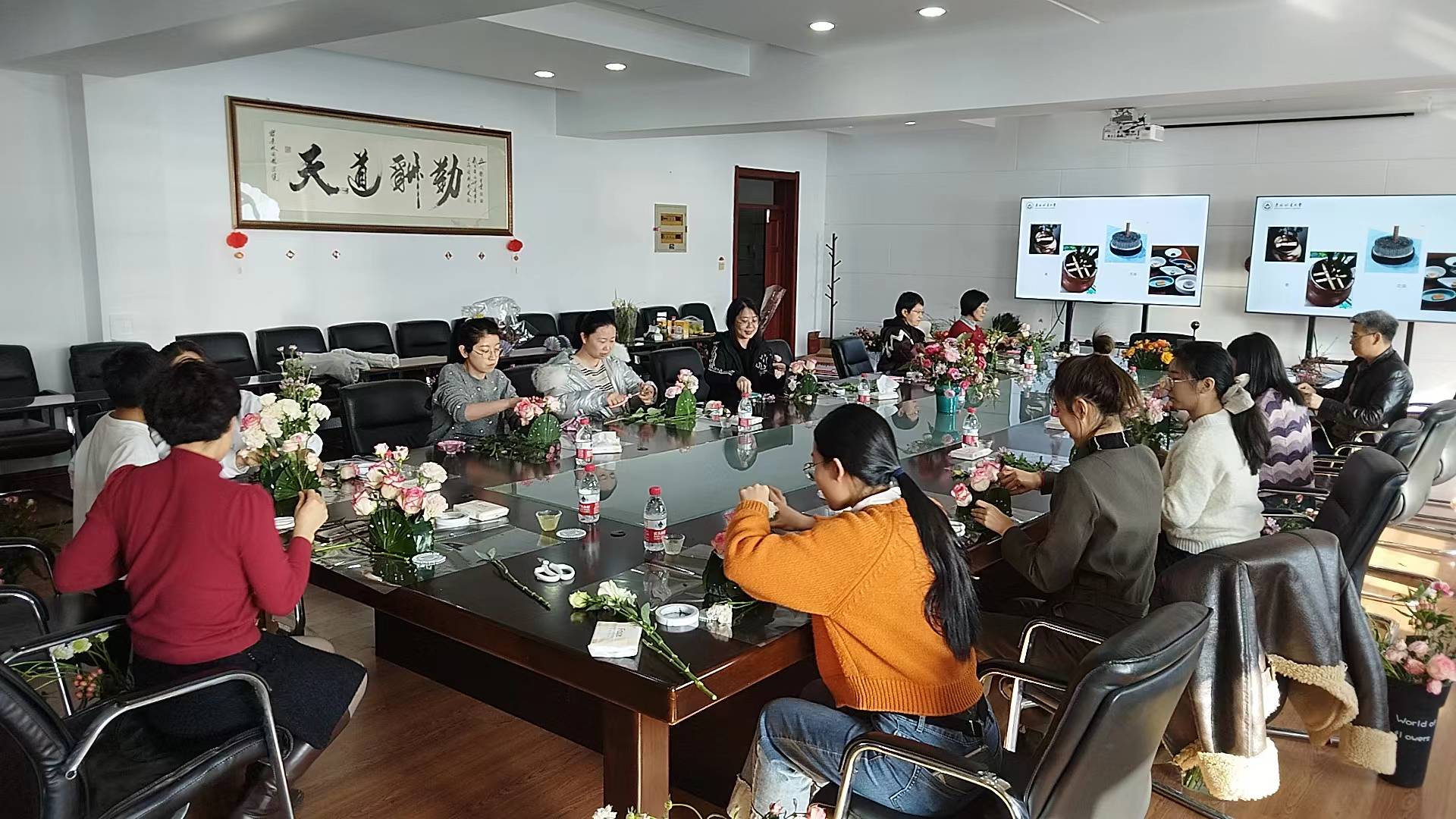 世界因你而美丽。为庆祝第114个“三八”国际妇女节,丰富女职工精神文化生活,营造浓浓的节日氛围,bwin于3月8日下午,在五楼会议室组织了“花香四溢沁园林”女职工趣味插花花艺活动。